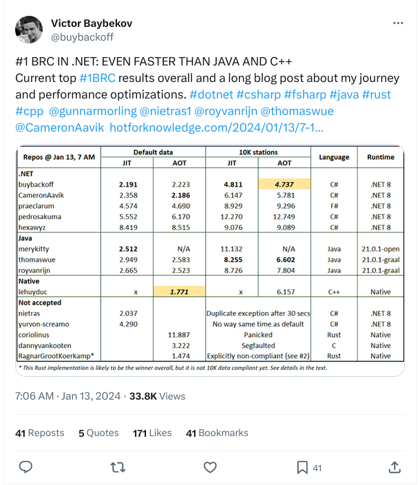 Java圈性能优化的大牛人有的是,也轮不到我和这位老哥争论。我想说的只是Java的1BRC成绩如何关你屁事?你的C#实现再好又关我屁事?